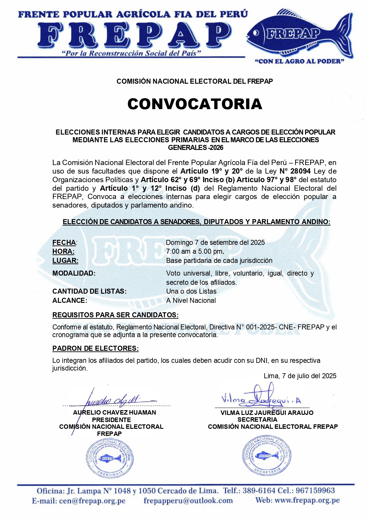 Mediante la Revolución del desarrollo agropecuario Nacional, asegurar el incremento de la productividad, para que el Perú cuente con un sector agrícola próspero y convertir al Perú en un País eminentemente agrario productor y abastecedor del autosostenimiento agro-alimentaria, y exportador predominante que eleve el nivel de vida y el empleo de nuestra población. Porque la agricultura es el único sector clave para un nuevo sistema de desarrollo agroindustrial, organizando medianas y pequeñas empresas productivas, comunales y de otras modalidades para industrializar y comercializar; creando fuentes de trabajo en la industria y el comercio.